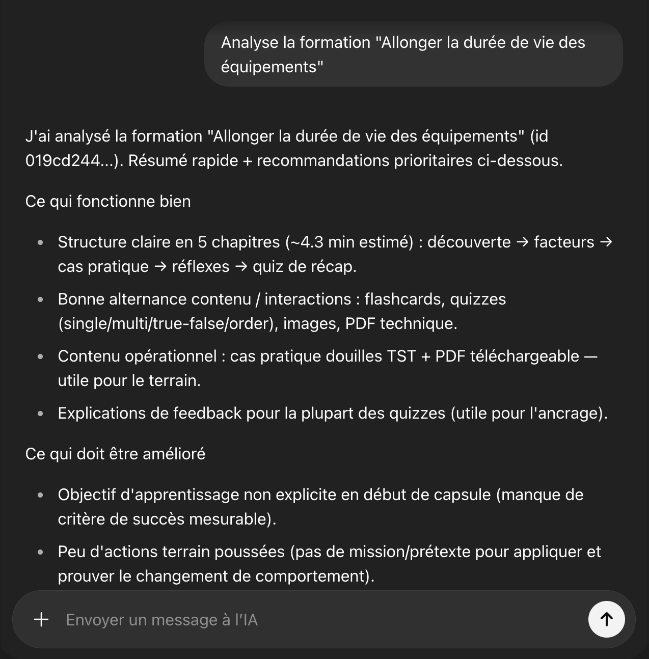 AI agents directly in your Cards space. Create a training course, analyze your results, edit your content, challenge your career paths — from Cards, without changing tools.